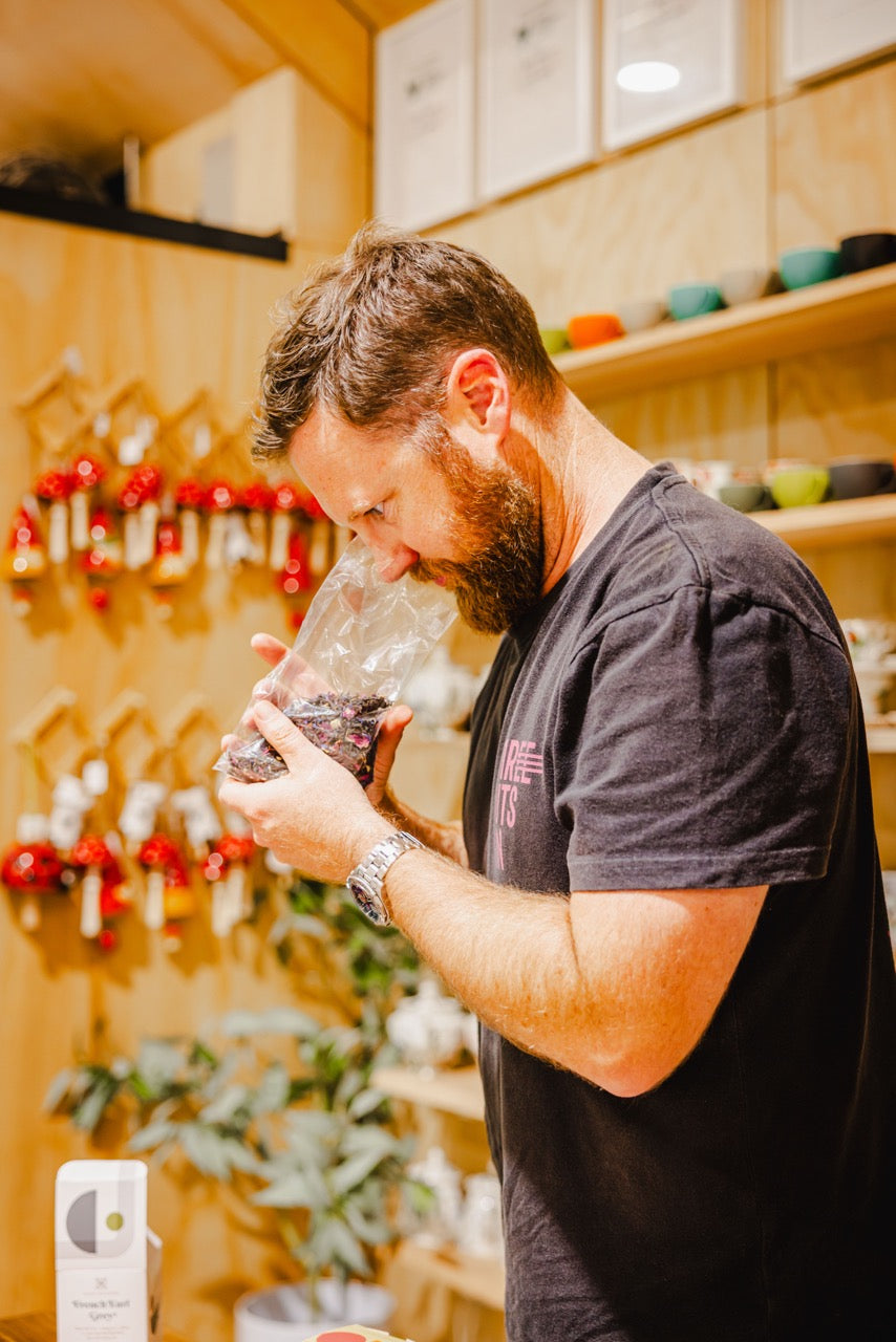 Here, where the air is crisp and the soil rich with promise, our tea blends come to life using local botanicals from the fertile Huon Valley. Every leaf, herb and flower is chosen with intention. Organic where possible, and always with care for our environment.